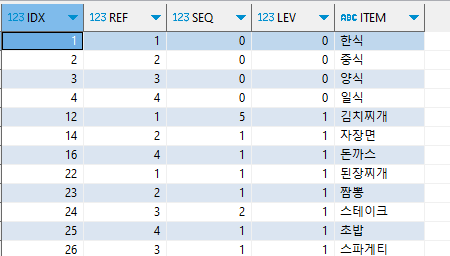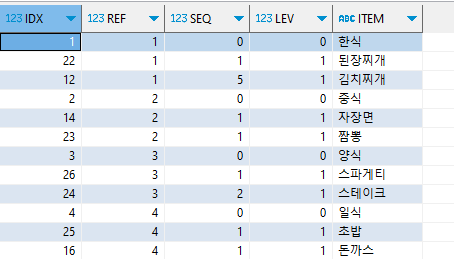 (idx는 이것저것 연습해보고 삭제했더니 ... idx는 무시해도 된다.)