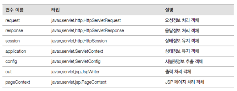 - jsp 가 서블릿 코드로 변환될때 _jspService() 메서드 안에 들어가게 되므로 jsp 에서는 일반 자바 소스와 달리 멤버변수나 메서드 선언은 기본적으로 불가능.